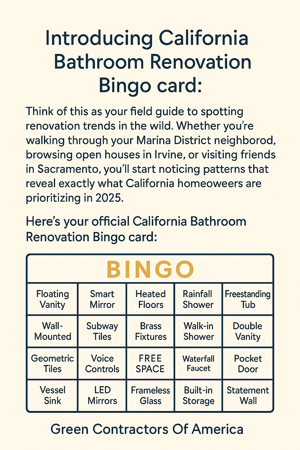 Once you've played a few rounds of California Bathroom Renovation Bingo, you'll start seeing your neighborhood—and the entire California renovation landscape—differently. You'll notice the subtle ways trends flow from one area to another, how different communities prioritize different values in their home improvements, and where the next wave of renovation activity might emerge.